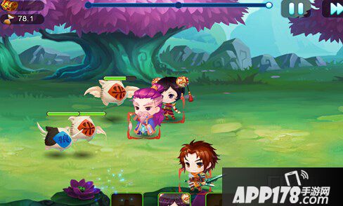 战斗流程:战斗开始后,左方会刷出怪物向右方进攻,右方玩家控制角色站位(上下左右移动) ,当怪物进入警戒范围,角色会自动进行普通攻击。战斗中会出现不同系的技能转珠,当角色收集够转珠,点击相应角色头像可对应释放技能。一波结束后,角色会自动前进,进入下一波战斗。