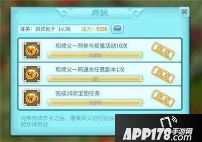 玩家在游戏内达到20级就能拜师啦,达到50级还能招收徒弟,继续开枝散叶,每日徒弟需要完成系统要求的作业(类似于让师傅带着打个副本,抓一抓鬼),然后师傅验收后彼此都领取师徒奖励,日复一日,直到徒弟圆满出师~