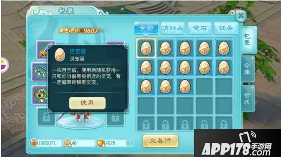 百宝蛋:使用后随机获得一只等级相近的灵宠,有一定几率是稀有灵宠