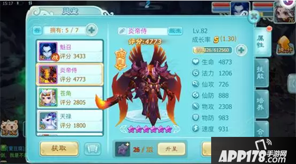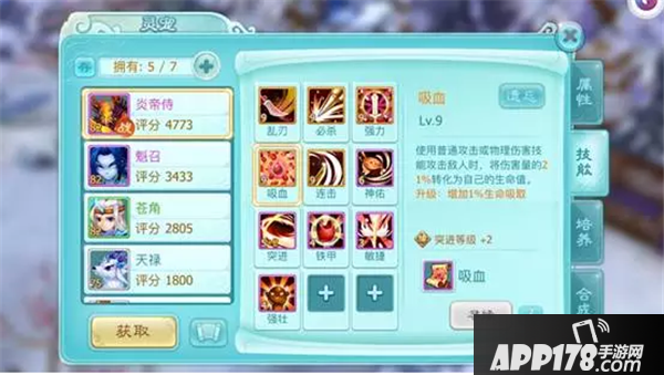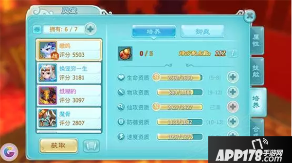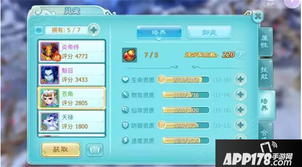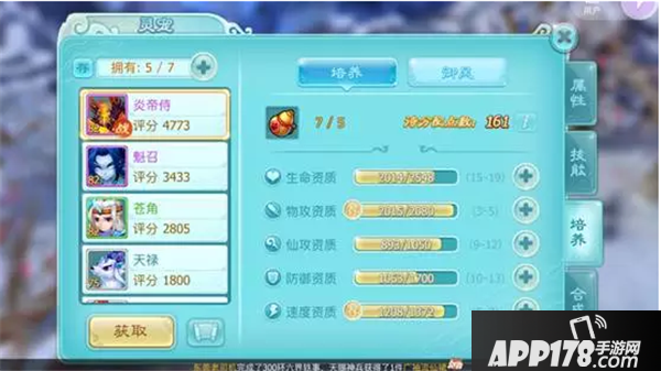 系统推荐的资质可以优先培养物攻,速度暂时放一放,因为我要保证炎帝侍的防御及生命,于是我培养了物理攻击以及生命。