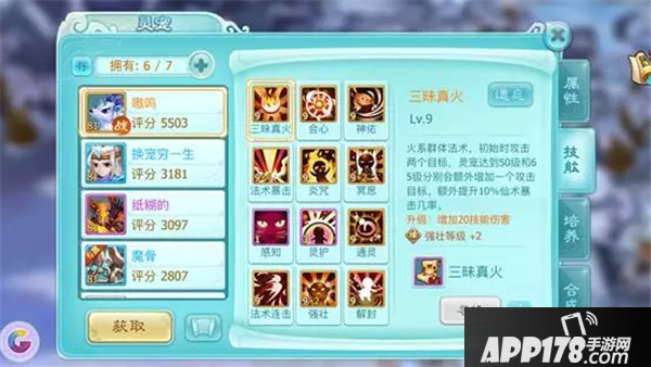 在技能方面,天禄可能自带的技能有4种:高级三昧真火、高级会心、普通通灵、普通法术暴击。我的天禄合出来就自带了三昧真火和会心开心,如果没有出高级三昧真火的,可以打高级雷系技能,输出不错的。