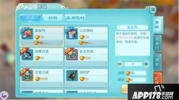染色需要两种道具,道具可以在商城购买或者一些任务中得到。