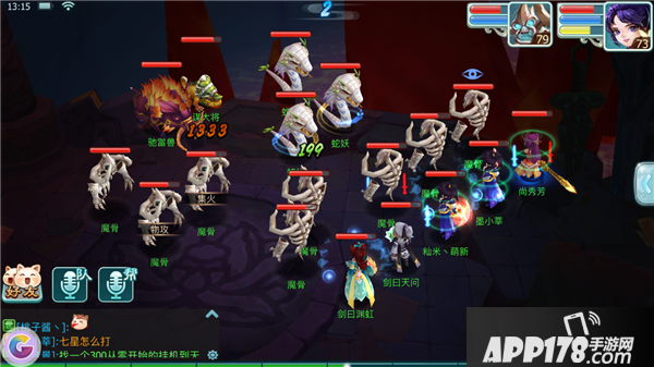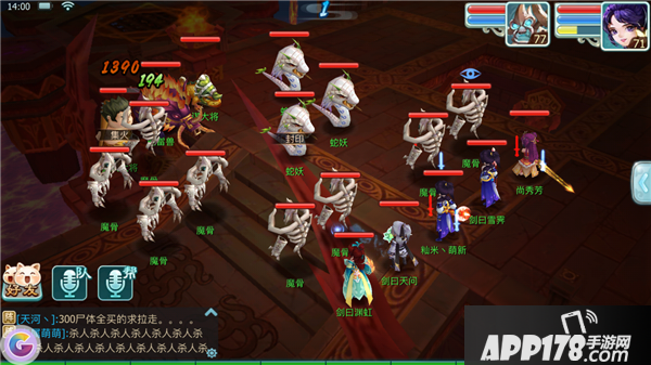 击杀勇武大将后,折剑休息回合,因为智谋大将只会随机选择一个单位回血,夜叉可以群,宝宝分散打魔骨。之后折剑可以行动的回合就挑选血少的修罗,夜叉单体配合秒掉一只小怪,然后继续群。