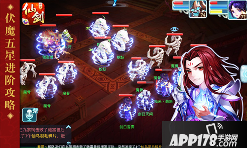 五星伏魔难度是比较高的,首先说一下怪物的阵容,驰雷兽(boss),会使用类似十字斩的怒火斩击,范围群伤,左右护卫分别是勇武大将和智谋大将,智谋大将会帮助队友回血(直接回满),但不会给自己加血,勇武大将会巨力打击,造成巨额伤害并眩晕。左边的小怪魔骨会物理群伤,右边的蛇妖会法术群伤(相连三个单位,伤害非常高)。