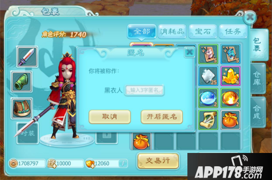 使用匿名卡后默认前缀黑衣人,名字最后可输入3个字作为后缀,如果不输入便直接匿名为黑衣人。