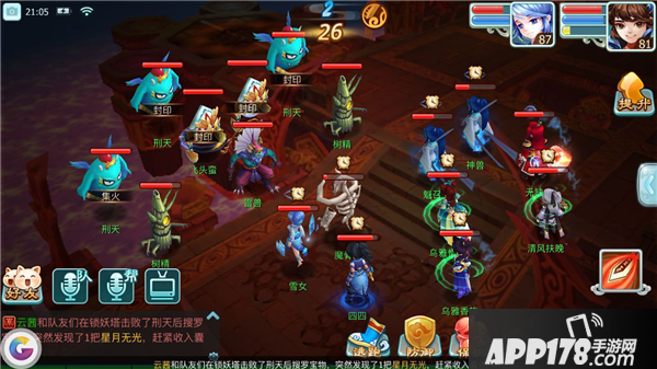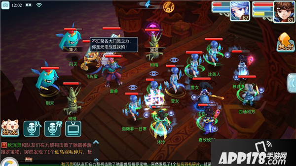 这次的新副本还有个特点,就是普通队伍进场,每回合开始会被boss封印一个(并不是技能,不会封不中),并且封印持续两回合以上。如果符合图中说的汇聚各大门派之力,也就是集齐五个门派开打,每回合不会出现封印,难度会降低不少。