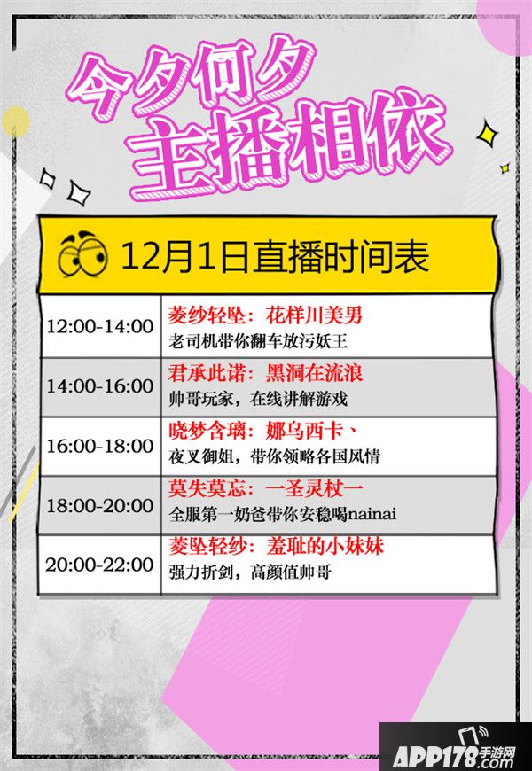 大家记得每天看直播哦,小编每天都会更新直播表,如果你有比较喜欢的主播或者想看的游戏内容,留言告诉小编,我们会不断优化直播内容~ 那么今天会是哪些主播为我们带来精彩的直播呢?赶紧和我一起看一看!