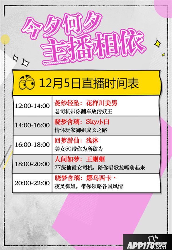 大家记得每天看直播哦,小编每天都会更新直播表,如果你有比较喜欢的主播或者想看的游戏内容,留言告诉小编,我们会不断优化直播内容~ 那么今天会是哪些主播为我们带来精彩的直播呢?赶紧和我一起看一看!