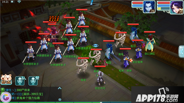 第二回合开始,boss张同休会释放驱虎吞狼技能,两名弟子会变成妖化弟子(大白喵),免疫封印、混乱,并会释放秒杀技能,需要尽快击杀。