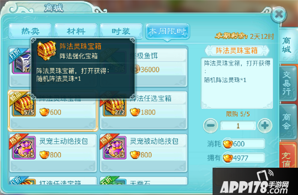 商城也会不定期出现阵法灵珠宝箱供玩家购买。