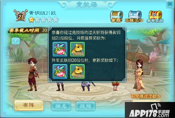 竞技场每个赛季进入黄金组1-5段位的玩家将会在赛季结束后获得未鉴定琥珀珠*2,进入白银组6-10段的玩家将会获得未鉴定琥珀珠*1。
