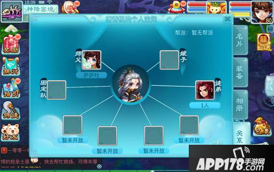 个人空间还可以查看玩家的关系网,包含玩家的师徒、夫妻、固定队等,话说这样是不是更好挖墙角了,那些订婚了还不带戒指在外面调戏妹子的汉子,你们怕了吗?
