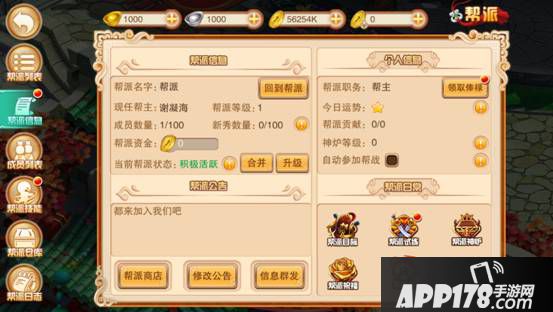 强烈建议新手玩家等级足够后第一时间加入一个好帮派,同帮派的玩家不仅可以一同聊天交流,组队任务副本,参加帮派战共同对抗外帮;必须加入帮派的另一个原因就是帮派福利非常的多,其中个人觉得比较实用的有帮派神炉(提高强化成功率)、帮派祝福(能够给成员附加各种提升能力的buff)、帮派技能(提升角色各个方面属性的技能)等等。
