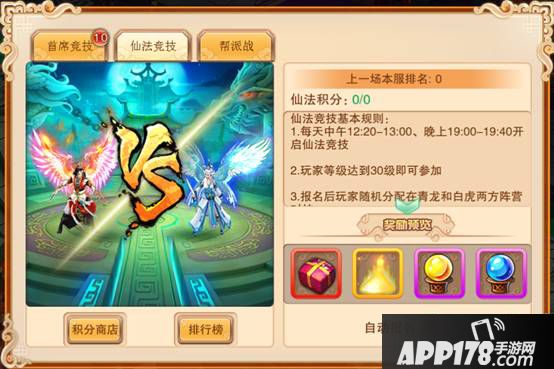 游戏中的竞技系统分为首席竞技、仙法竞技和帮派战三种不同的形式。