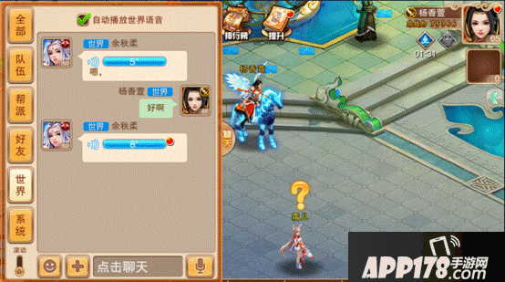 值得一提的是游戏中的语音系统非常的完善,玩家间完全可以通过语音来进行交流,语音系统的加入给玩家带来了非常大的便利,战斗中可以直接语音进行攻略交流,站街时可以和帮派成员以及同服玩家进行聊天,解放双手,非常的方便。