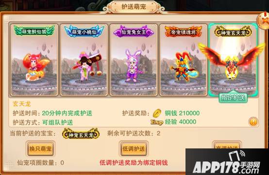 每天能够获得3次护送萌宠的机会,每成功护送一次即能获得丰厚的铜钱奖励,并且在每天的19:40~20:30期间护送还能获得双倍的铜钱奖励哦。
