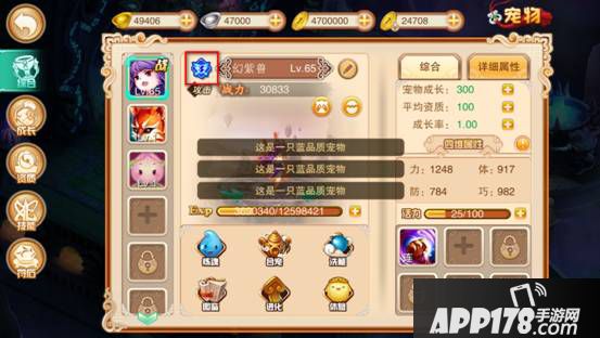除了资质能够提升宠物战斗力以外,提高宠物成长值也能够提高宠物战力。提升成长值后,宠物的四维都会相应地增加,从而增加各项基础数值。成长值每到一个阶段,还会额外奖励属性点,因此要为每个阶段目标而好好努力哦!