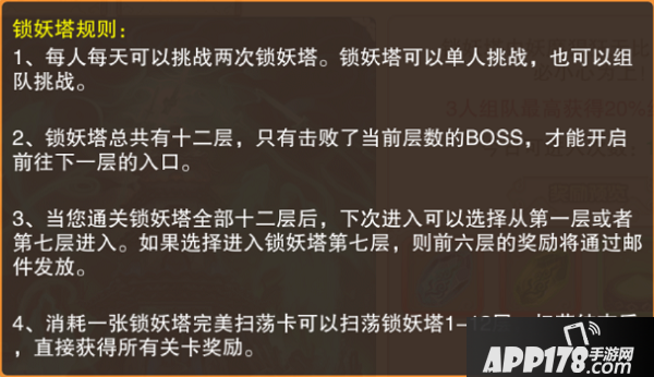 锁妖塔和无尽试炼一样是组队挑战的副本,当然你就得你足够强大也可以选择进行单人挑战,通过爬塔获得奖励,层数越高奖励越丰厚!