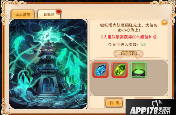 再次提醒一句:锁妖塔是组队副本哦!请各位务必进行组队挑战!而且3人组队挑战会有经验加成哦!