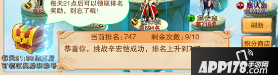 玩家每天有10次免费的挑战时间,可以选择首席竞技场的其他玩家进行挑战。成功挑战玩家后,若目标玩家的排名比自身高,则与目标玩家交换排名;若挑战失败,则排名不变。