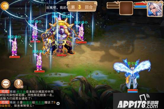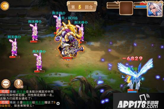 从上面两个图能看到,我在第三回合已经把所有侍仆都消灭了,但是刑天在后面的战斗中又重新把侍仆都召唤出来了,我们就要重新打一遍了。所以这里我推荐采取挑战乌天狗时的策略:留下一只侍仆。打侍仆时可以先让逍遥用移魂咒把侍仆都睡眠了,然后在单点击杀。