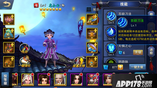 百辟刀法:短距离旋转冲杀远处目标,命中后对目标绞杀12次使目标浮空,持续5秒,每次造成n点外功伤害