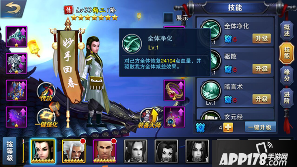 全体净化:对己方全体恢复n点血量,并驱散我方全体减益效果
