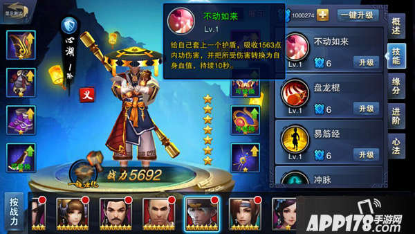 心湖大师是前中期一个不错的T,技能有控制、有护盾和伤害吸收等,建议前期郭嵩阳、心眉和心湖先获得谁都可以考虑换掉龙啸云,在没获得完美品质的3个T之前,不考虑再做更换,其中期推荐的战士。
