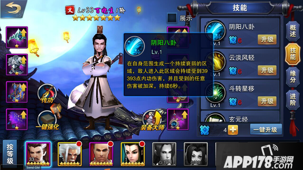 阴阳八卦:在自身范围生成一个持续衰弱的区域,敌人进入此区域会持续受到n点内功伤害,并且受到的任意伤害被加深,持续6秒