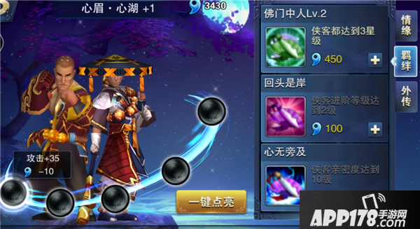 羁绊技能也是需要勾玉升级,会对侠客有更高要求,每种羁绊升得越高,也同样会给上阵侠客带来一定的属性提高。