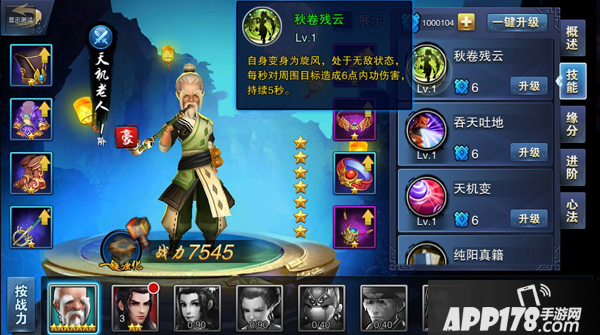 秋卷残云:自身变身为旋风,处于无敌状态,每秒对周围目标造成x点内功伤害心,持续5秒