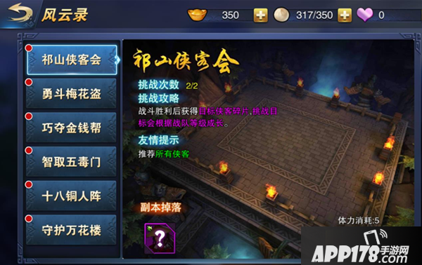1.祁山侠客会,可以挑战现有的侠客碎片,是提升侠客星级最好的途径之一。