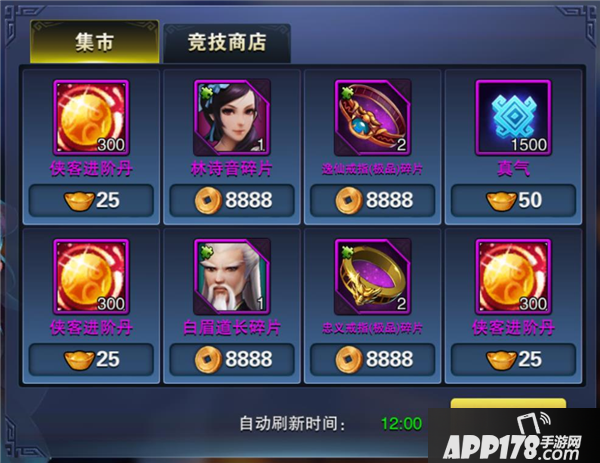 竞技场累积的荣誉币可以在这里换各种稀有的道具,想要获得别人没有的侠客吗,快来竞技场挑战吧!