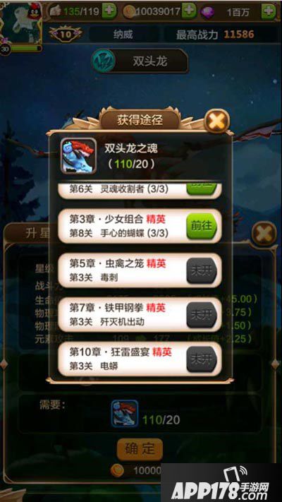 战龙【双头龙】可以通过消耗10个双头龙之魂解锁。双头龙之魂可以通过通关精英关卡2-6灵魂收割者、3-8手心的蝴蝶、5-3毒刺、7-3歼灭机出动、10-3电蟒获得。