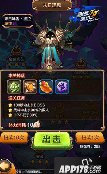 在躲避第一波攻击之后,BOSS会释放一个道具,吃掉道具后的第二波攻击追踪力强,最好使用飞龙技能大招化解。随后的混合式攻击仔细点躲避,一阵猛攻到BOSS血量条由2变为1,,这时BOSS会释放两个道具,其中一个为盾牌,玩家可以利用盾牌防护时间肆意攻击直到消失。在随后的时间,战力较弱的玩家飞龙可能会血量过低,这时可以选择死亡换上辅助飞龙,换上后释放大招,在仔细躲避后可以撑到打掉BOSS,得到三星通关。