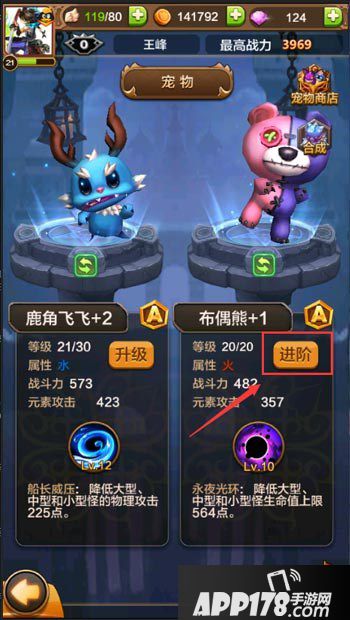 宠物进阶是玩家提升自己战斗力非常重要的手段,进阶后就可以提升宠物的等级和技能所以宠物等级最好和自己的角色等级保持一致比较好。当自己的战斗力比挑战关卡低的时候不妨去进阶一下自己的宠物获得更高的战斗力在去挑战关卡。