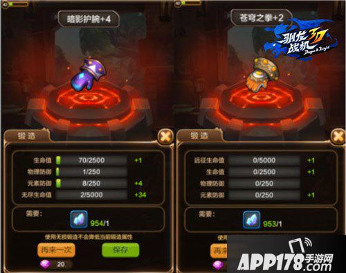 值得注意的是,除却角色通用的生命值、物理防御、元素防御三个锻造属性之外,《驯龙战机3D》对于每个角色的装备锻造附加了一条额外的属性。如:雷德的额外装备锻造属性是强化远征生命、斯嘉丽的则是对无尽生命值的强化、公主菲儿则获得了对战元素防御的额外锻造属性。如此设定,强化了游戏现有的三大角色区别,使角色的对战更有针对性。