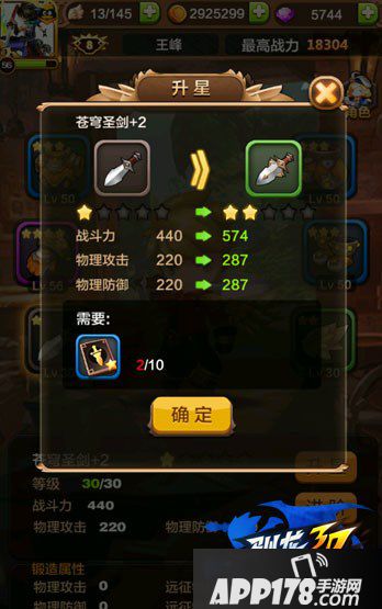 需要消耗道具武器碎片,目前只可以通过远征商店购买获得。苍穹之剑升星需要玩家每日扫荡精英关卡来累积获得,同样随着升星等级的提高需要武器碎片的数量也随之提升。(装备最高品质为橙色装备,4星可提升为紫色品质)