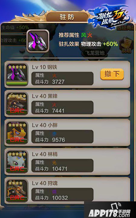 远征玩法共提供十二个关卡供骑士们挑战,难度层层递增。骑士们想要通过全部关卡,必先详细了解玩法规则。首先,远征关卡战斗中,不会提供回血道具,每次闯关成功飞龙的血量均会被记录,阵亡后无法再出战。第二,飞龙阵亡后,可安排其它飞龙接力闯关,飞龙越多,打的越远。第三,驻防点可以选择飞龙进行驻防,获得属性加成。选择对应属性的龙,加成会更多。了解到这三点规则,骑士们便可利用规则,打出最大输出。