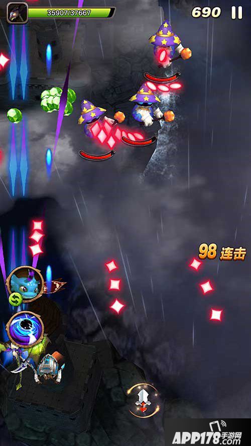 首先是小怪(最最容易打的那种)与魔术师的交替出现,小怪们成群出现,很容易就秒掉,小怪被秒后还会掉落增强攻击的道具,接取后有助后面的清怪效率和速度!