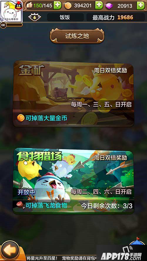 最后要提醒大家的就是,试炼之地周日奖励双倍,而且金矿和食物猎场各可以打3次!一周才一次的机会绝对不能错过啊!想存钱、攒食物的赶紧准备进场了!