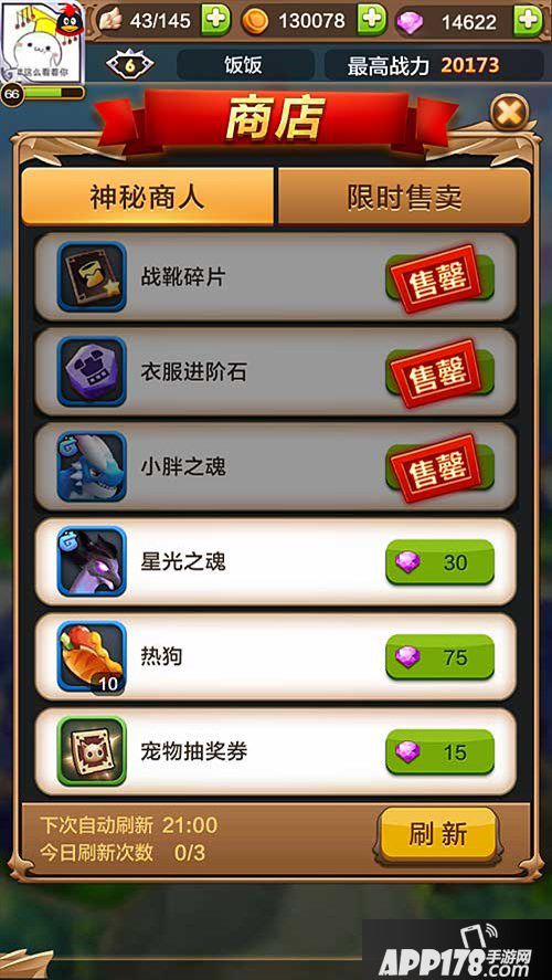 游戏商店中的神秘商人每天9点、12点、18点、21点准时刷新,记得这4个时段来商店转转,说不定会有你想要的东西哦。而限时售卖也时有划算的好货,有预算的玩家可以考虑关注。