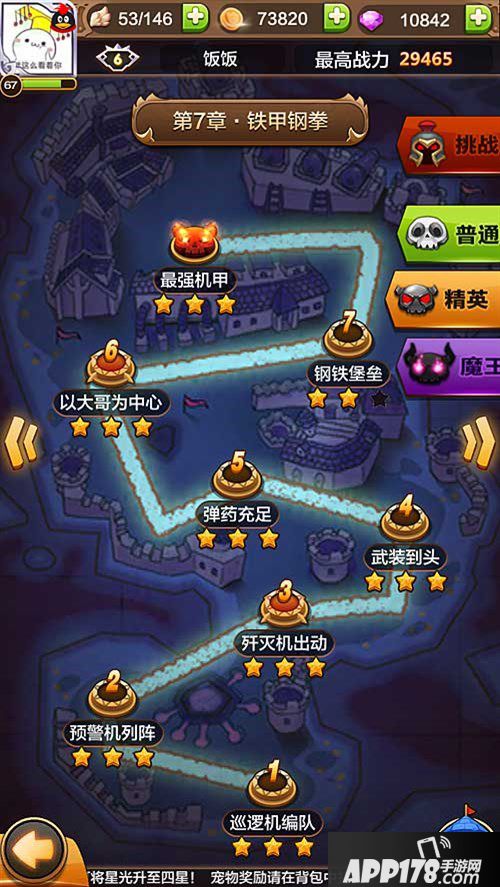 普通关卡:每次消耗6-10体力,可以获得经验、金币、飞龙食物(鸡腿、汉堡)、宠物糖(小宠物糖、中宠物糖)、装备进阶石。普通关卡内最有价值的奖励就是装备进阶石了,每个装备每10级就需要进行进阶1次,不进阶则装备无法提升等级,每次消耗的进阶石随装备等级的提升而有大幅的增加,所以无论什么时候,进阶石都是一定需要的。