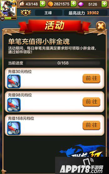 3、单笔充值得小胖金魂