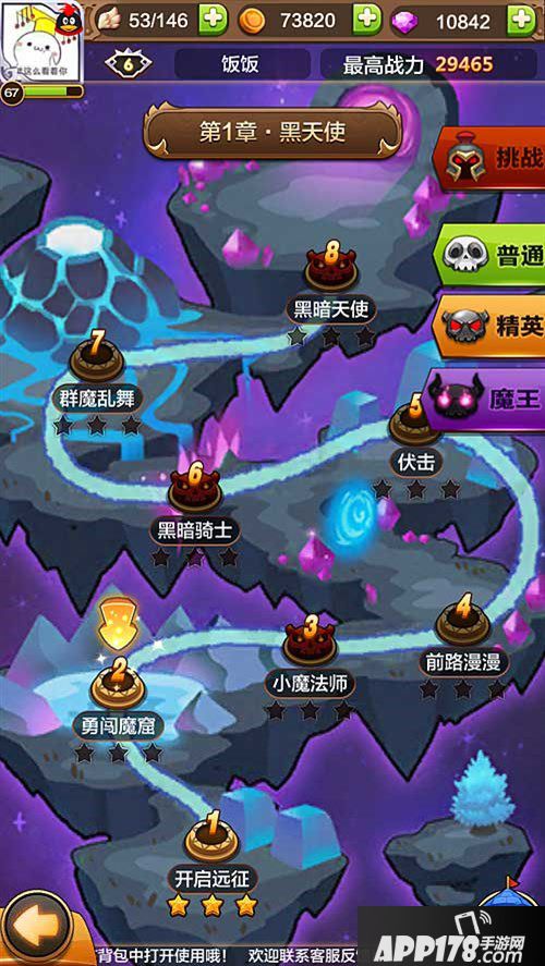 魔王关卡:精英关卡6-8通关后开启,每次消耗12体力,可以获得飞龙进化所需要的材料、经验、金币、飞龙食物(汉堡)等。该关卡的初始建议战斗力就高达12000,每关每天只能打3次,关卡内无论是小怪还是BOSS的攻击都明显比其他关卡的更密集和强力,不过为了那些珍贵的进化材料,还是需要拼一拼的。