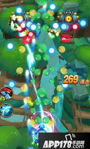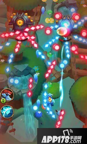第二种的话是发射的蓝色红色光球,速度比较慢,而且在发射出来后,在屏幕停留时间蛮长的,所以我们就直接在它们的间隙慢慢的穿梭即可,没有特别需要躲避的。第三种遇到这些花的时候就需要注意了,它们发射的子弹类型比较杂,各种都有,而且速度不是很慢,不过运行的轨迹很明显,这种我们就依据不同的运行轨迹来躲避,子弹间的间隙也是比较大的。