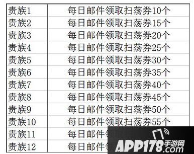 如表格所示,特权是能够获得的扫荡券的最大输出口。