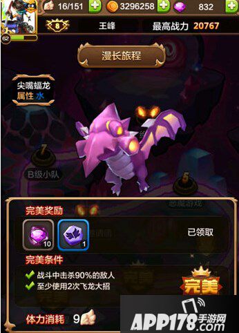 首先还是建议玩家战斗力达到本关建议战斗力在进行挑战,本关无BOSS但是需要注意一点就是本关必须携带两种飞龙切换才可以达成使用两次飞龙大招,我第一次就带了一只飞龙导致第一次没有达成完美通关只好再来了一次。