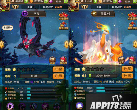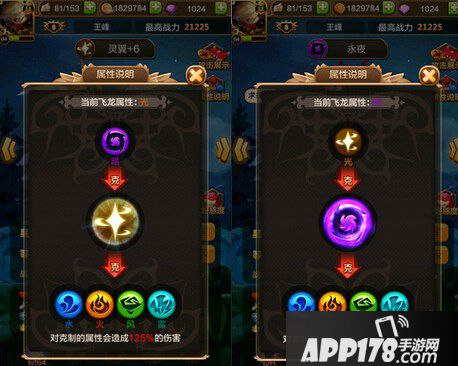 首先所有的飞龙中暗属性和光属性是克制效果最好的两种元素飞龙,因为驯龙战机游戏中光、暗两种属性可以克制其他的火、水、雷、风四种属性所以在选择光属性和暗属性的飞龙肯定在效果上是非常有优势的,毕竟元素克制可以提升125%的伤害加成。而且光属性和暗属性是相互克制的效果,所以选择永夜搭配灵翼的组合就是100%克制所有关卡!
