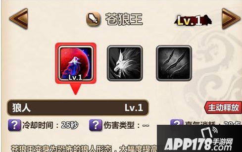 不过作为苍大叔的大招,效果还是不错的,在一级时,会持续变成狼人15秒,期间武力和攻速都提升30%。